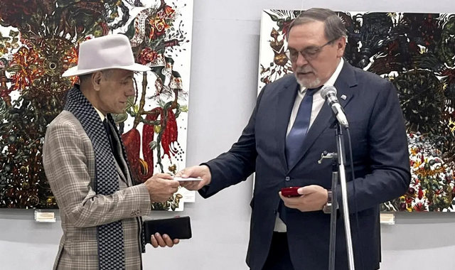 В выставочном зале Союза художников Туркменистана открылась экспозиция «Песни песков», приуроченная к 75-летию мастера кисти Бердигулы Амансахатова. На открытии Посол России в Туркменистане Иван Волынкин вручил Б.Амансахатову Почетный знак соотечественника за многолетнюю деятельность по укреплению творческих связей между странами, сообщает информагентство Orient.
