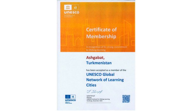 Ашхабад был официально принят в сеть 4 декабря 2025 года вместе с 72 новыми участниками из 46 стран. ЮНЕСКО подчеркнула вклад столицы в развитие образования, науки и создание возможностей для обучения людей всех возрастов.