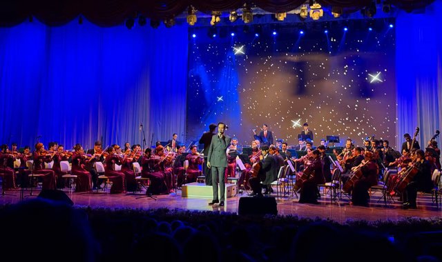 Программа включала инструментальные произведения, советскую эстрадную классику и зарубежные хиты. Симфонический оркестр исполнил вальс Евгения Доги из фильма «Мой ласковый и нежный зверь», пьесу Александры Пахмутовой из картины «Три тополя на Плющихе» и другие композиции.